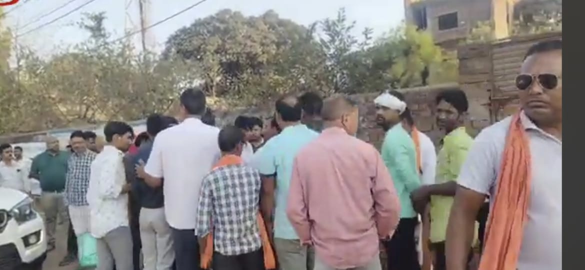 अग्रसेन आईटीआई के कब्जे को हटाने के लिए नाप जोख टीम : के सहयोग हेतु कालोनी के सैकड़ो लोग सड़क पर उतरे