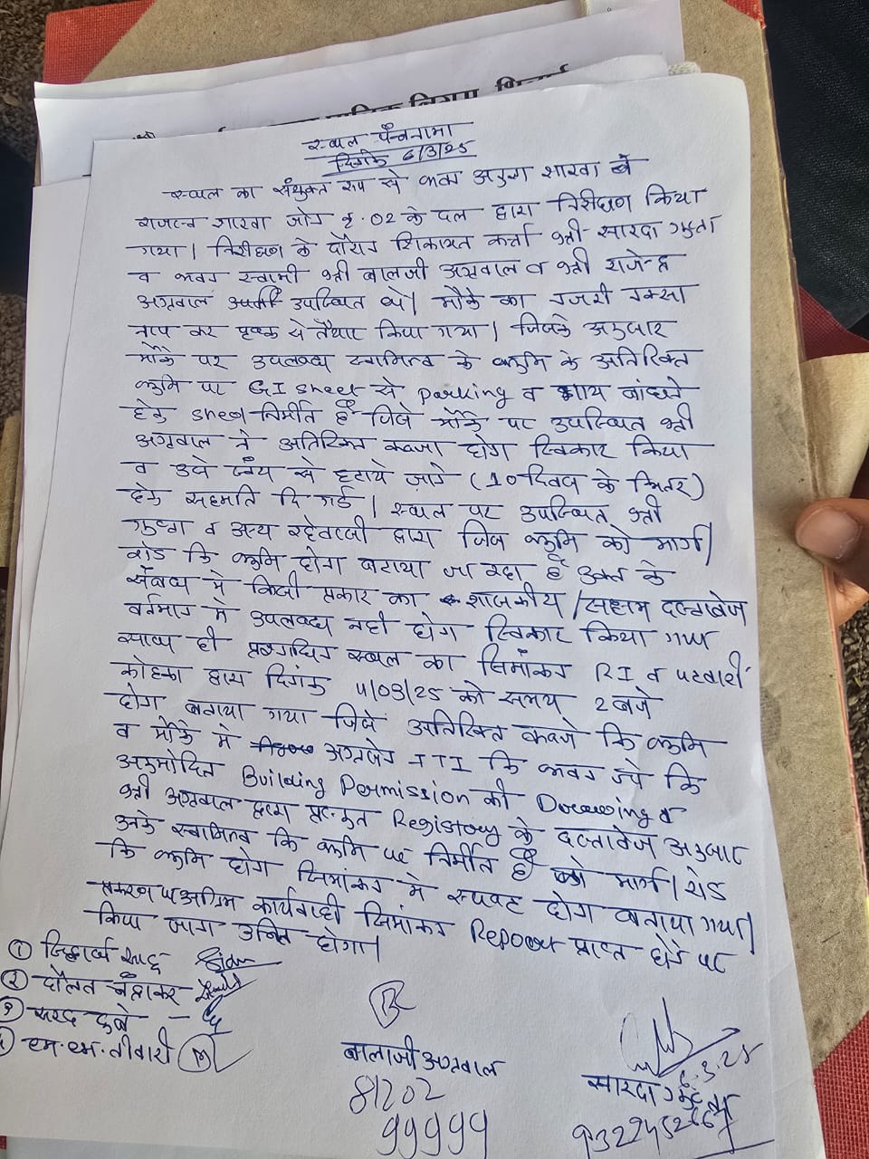 कि नहीं जिसे पटवारी और आर आई एक हफ्ते के बाद रिपोर्ट देने का आश्वासन दिया विदित हो कि अग्रसेन आईटीआई के संचालक द्वारा लगभग 25 वर्षों से रोड की जगह को कब्ज में करके रखा गया है और अधिक प्रभाव के कारण रोड को खाली नहीं कराया जा सकता है जिसे भाजपा नेता शारदा गुप्ता ने माननीय उच्च न्यायालय का शरण लेकर इस रोड को कब्जा मुक्त करने का याचिका दायर की थी जिसे माननीय उच्च न्यायालय ने याचिका को स्वीकार कर नगर निगम को आदेशित किया कि 45 दिनों की भीतर जांच कर रास्ते को अवैध अतिक्रमण से मुक्त कराया जाए।