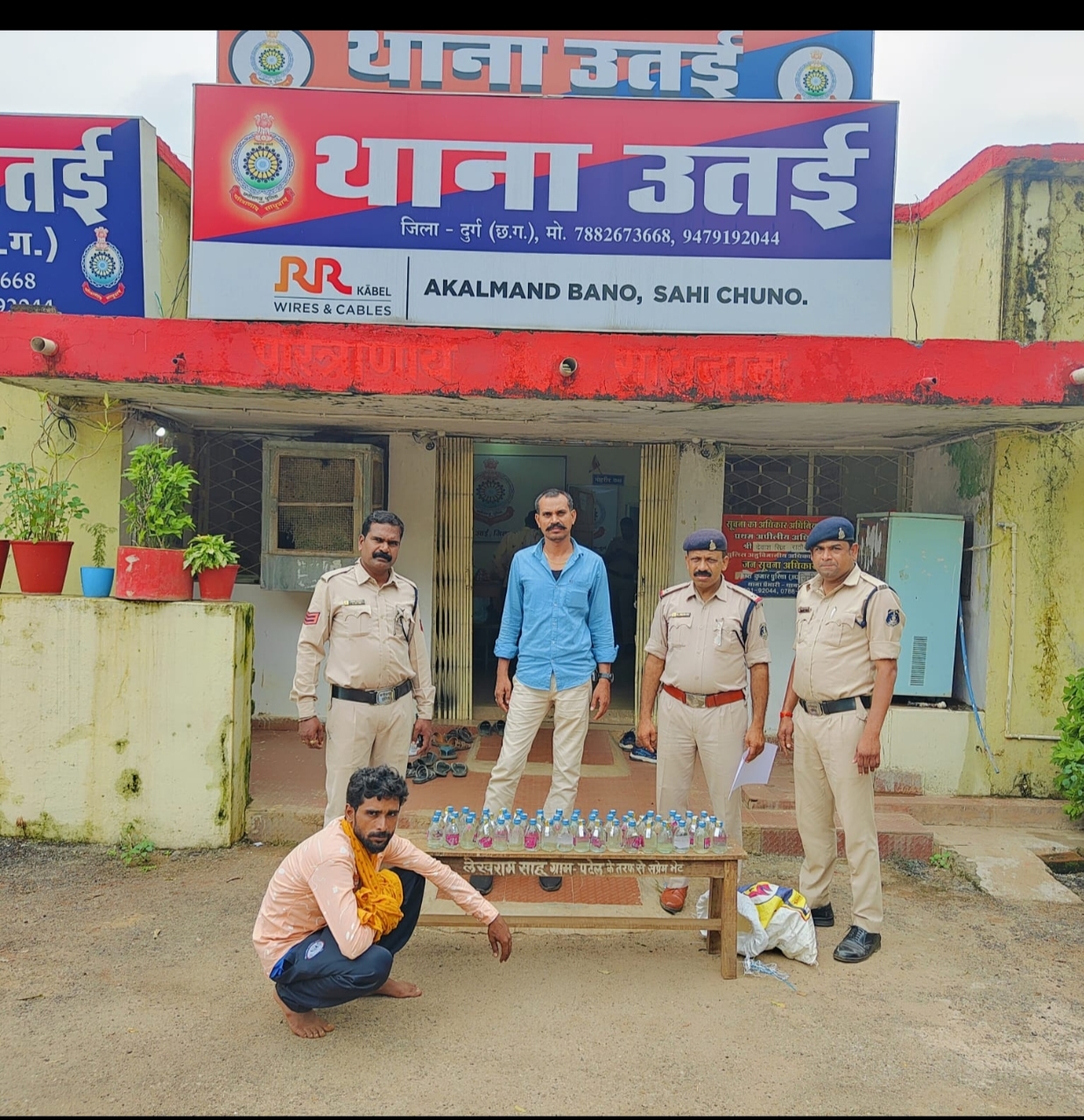 : आरोपी के कब्जे से एक सफेद रंग के प्लास्टीक बोरी में 50 पौव्वा देषी प्लेन शराब