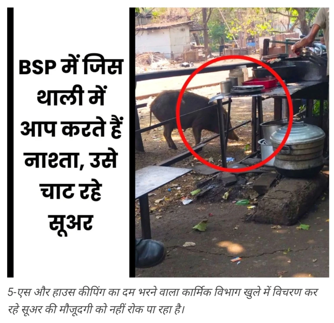भिलाई स्टील प्लांट: सेहत से घिनौना मज़ाक : सूअर चाट रहे थाली-प्लेट, आप करते हैं उसी में नाश्ता