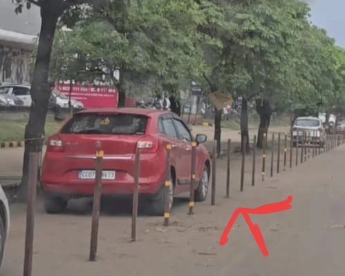 सूर्या ट्रेजर आइलैंड मॉल द्वारा सरकारी रोड पर : गाड़ी ना पार्किंग हो इसलिए बेरियर लगाया गया