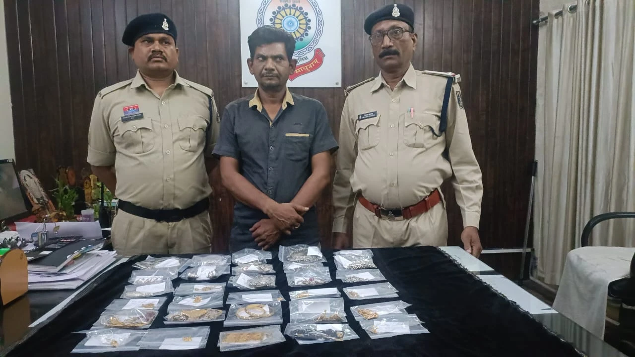 आरोपी के कब्जे से चोरी गई सभी सोने चांदी के जेवरात की गई बरामद। : शिक्षक कालोनी नूतन चौक भिलाई में हुई लाखों के जेवरात चोरी के आरोपी 24 घंटे के अंदर पुलिस की गिरफ्त में।
