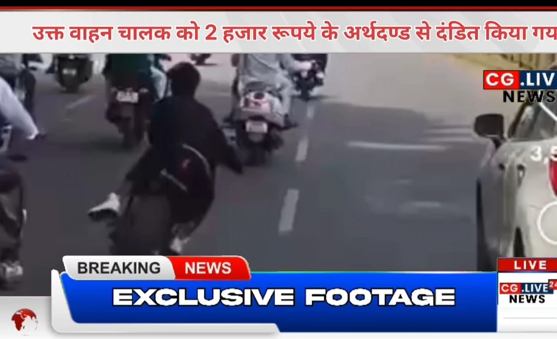 यातायात पुलिस दुर्ग द्वारा व्यस्तम मार्ग पर में दो पहिया वाहन को : लापरवाहीपूर्वक वाहन चलाते वीडियों के आधार पर की गई कार्यवाही।