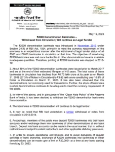 : बड़ी खबर! 2000 के नोट होंगे बंद, RBI ने किया सर्कुलेशन से बाहर, 30 सितंबर तक बैंकों में बदले जाएंगे नोट