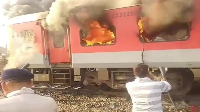 fire in train : पंजाब में अमृतसर-सहरसा गरीब रथ एक्सप्रेस के एसी डिब्बे : fire in train : पंजाब में अमृतसर-सहरसा गरीब रथ एक्सप्रेस के एसी डिब्बे में आग, महिला घायल